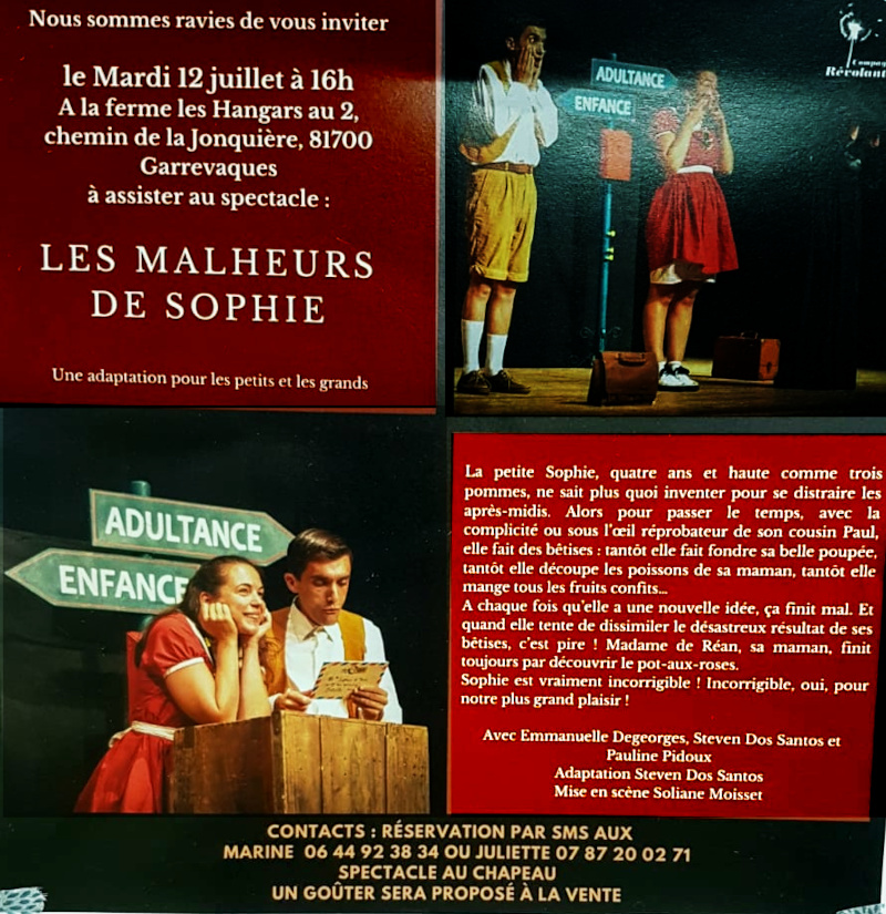 * Soirée Annulée vin fromages le samedi 15 octobre à 19 h : La récréation nous propose un apéritif, une assiette de “dégustation fromages” accompagné d'un verre de vin blanc ou rouge (de qualité !) suivi d'un café gourmand pour 15 euros.
