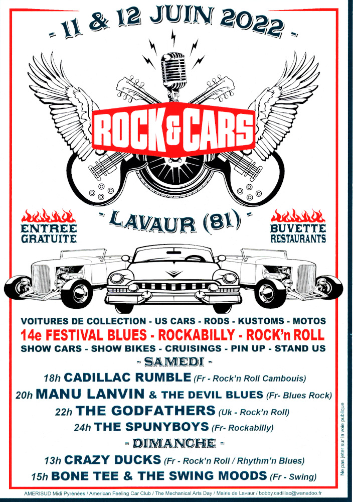 vendredi 3 février à partir de 19h - 1er BEFORE du festival ROCK’&’CARS 2023, Au Pub LES AMERICAINS, 1 allées Jean Jaurès 81500 Lavaur. Rencard Voitures de Collection, Américaines, Rod, Kustoms et Motos. Avec concert du groupe: THE JUKE JOINTS BAND (Blues Rock)