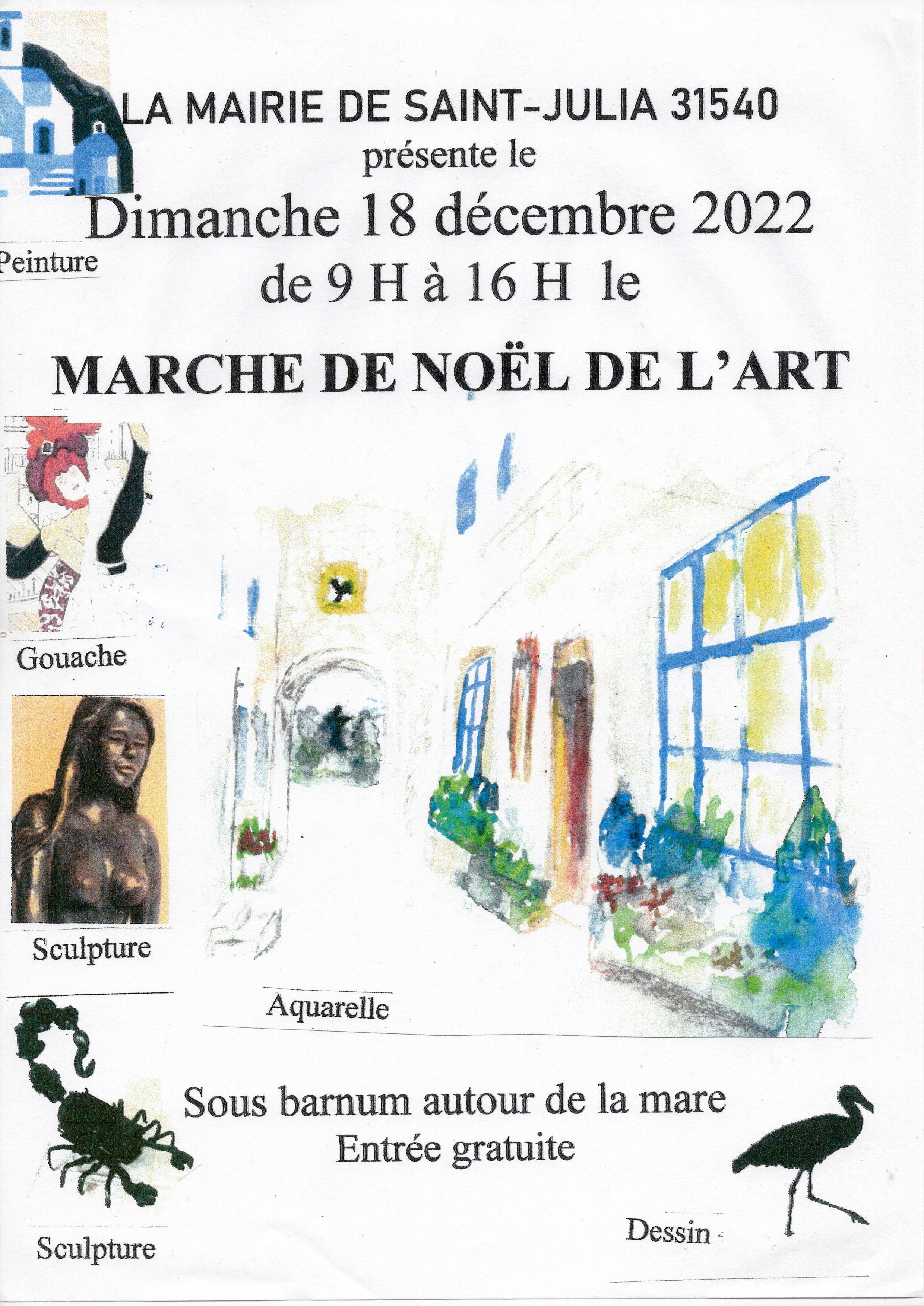 • Dimanche 18 décembre à Saint Julia - marché de Noël de l'art Sous barnum, autour de la mare, entrée gratuite.