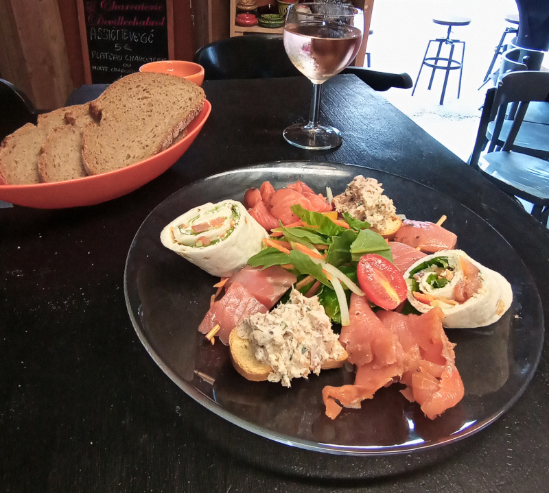 - Dimanche 24 juillet 2022 : Pierre propose son assiette de saumon à 10€ composée de saumon fumé, truite fumée, saumon gravlax, rillettes saumon & wrap. (cf photo) (saumon label rouge et bio, fumage maison) Tout en Saumon artisan qualifié 06.29.99.59.14. En plus des assiettes de moules & huîtres, du camembert rôti, et des assiettes fromages, charcuteries, végé ou mixtes vous serons proposées. Plus de réservation pour ce dimanche, tout est complet
