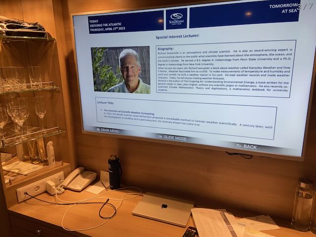 - Richard donne une conférence sur le bateau qui relie Palm Beach Florida USA à Lisbon Portugal, pour revenir à Saint Julia