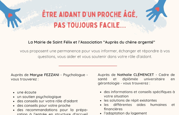 - Permanence pour les aidants avec l'association Le Chêne argenté à Saint Félix.