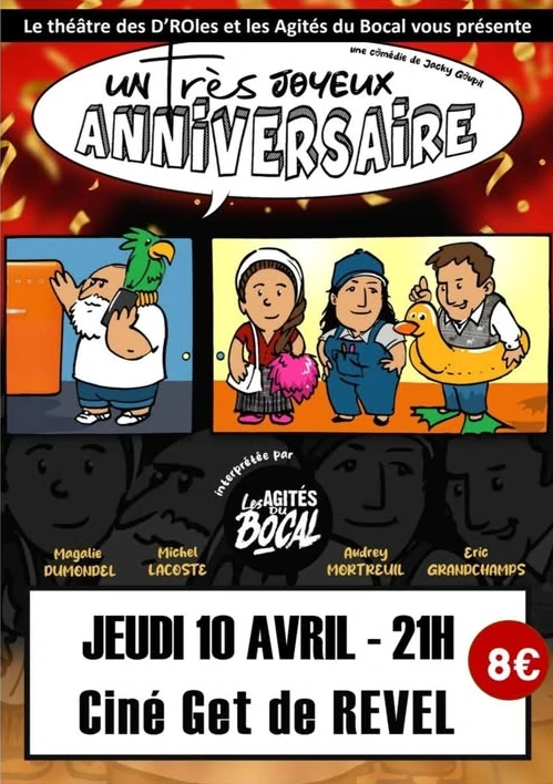 - Du rififi au couvent par le Théâtre des D'ROLES, le jeudi 20 novembre 2025 à 21h au Ciné Get de Revel, 38 Rue Georges Sabo, d'après la pièce originale de Jean Marie Douchet : “Quand une soeur est retrouvée assassinée, le cardinal Barbafoie mène l'enquête au milieu de nonnes déjantées. Une comédie pleine de quiproquos et de rebondissements, drôle et délicieusement irrévérencieuse !” / Tout public / Tarifs normal 6€ et gratuits pour les moins de 10 ans / Renseignements à grandchamps@orange.fr.