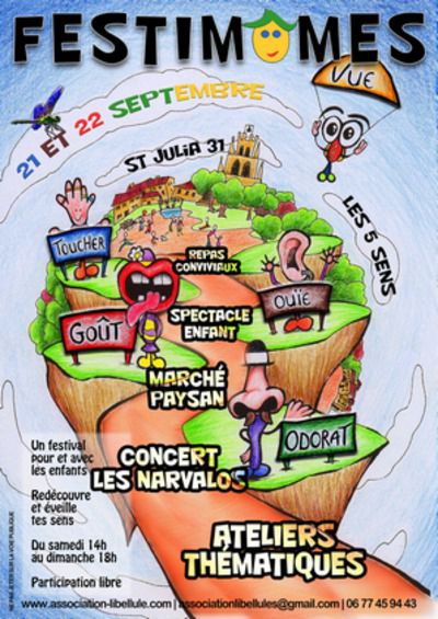 - sam. 21 sept. et dim. 22 sept. 2013, aura lieu à Saint Julia (31540), à 40 km de Toulouse à côté de Revel), dans les rues du village, la nouvelle édition de Festimômes 2013,