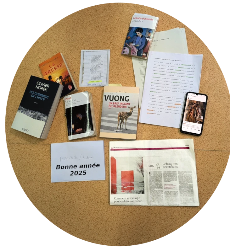 Février 2024 a beau avoir 29 jours, le dernier vendredi du mois tombe très tôt, le 23 février ! Rendez-vous donc de 20h30 à 22h à La Récréation, le bar associatif à côté de la mairie de St Julia. La précédente séance, toujours aussi chaleureuse et très féconde car nous n'étions que 8, nous a permis d’entendre des textes de Mahmud Nasimi, Maxence Fermine, Hermann Hesse, Eric Fottorino, Ian Mannouk, Thomas Pesquet, Luc Bronner, Camille de Peretti, Giuliano da Empoli, Andrée Corvol, Bernard Wisscher, Hervé LeTellier, Pierre Desproges ainsi que des exemples de la novel langue et toujours le quizz sur des aphorismes ou extraits de discours plus ou moins connus (voir photo). Alors, à vendredi 23 février pour le prochain florilège ?! Le principe reste le même: chaque volontaire lit ou déclame un texte. Le temps d’antenne est limité à 3 minutes afin que chacun puisse s’exprimer. Quitte à refaire autant de tours que possibles et souhaités. Contact : mlmoinet44@gmail.com