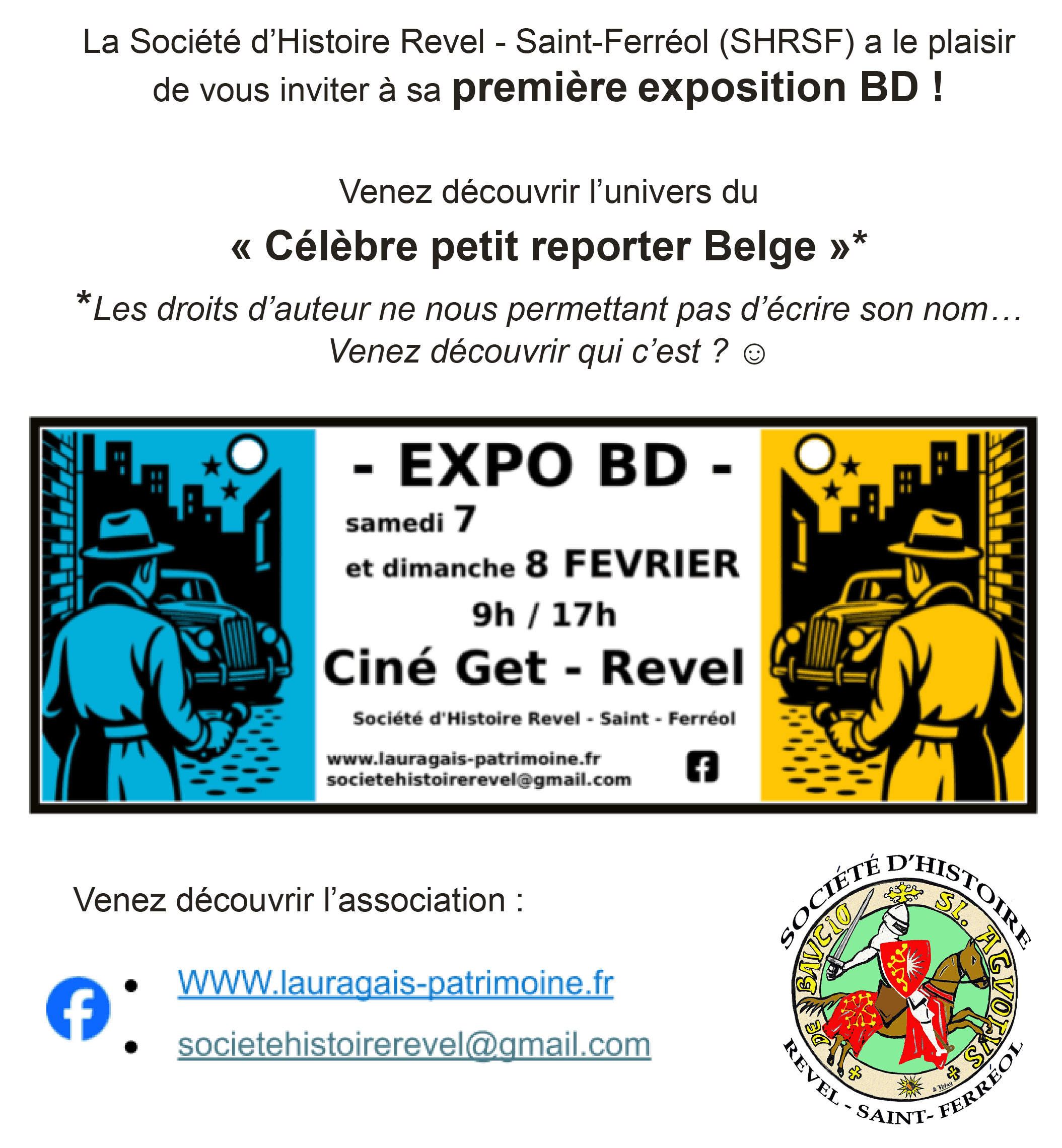 - AG de la SHRSF - Assemblée Générale de la société d'Histoire de Revel Saint Férréol le samedi 7 février 2026 à 17 heures au Centre Culturel Get dans la salle Louis Astor.