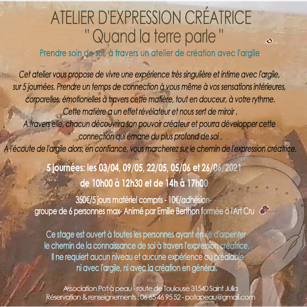 - Bonjour à toutes et à tous, Voici la programmation pour cette année. Deux plaquettes: une pour les ateliers réguliers et une autre pour les stages. Bonne découverte! Emilie Berthon