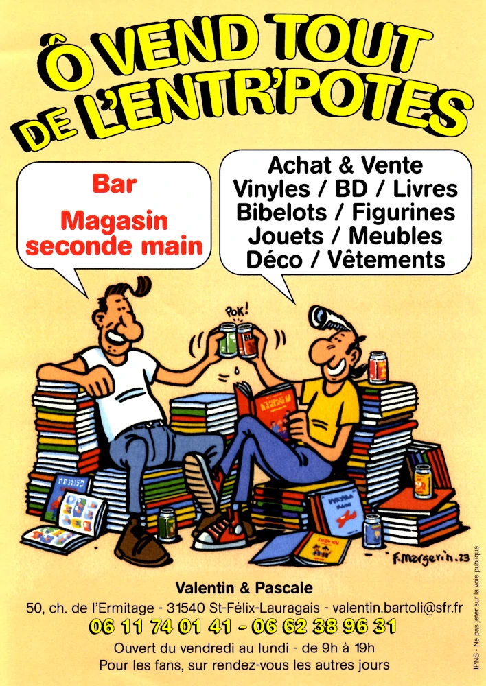 - Saint Félix, on vend tout de l'entr'potes. Retrouvailles dans un bar et magasin de seconde main Saint-Félix-Lauragais. Pascale Petit et Valentin Bartoli viennent d’ouvrir un commerce au 50 rue de l'Ermitage à Saint-Félix. Voir l'article d'Angélique Passebosc dans la Voix du Midi